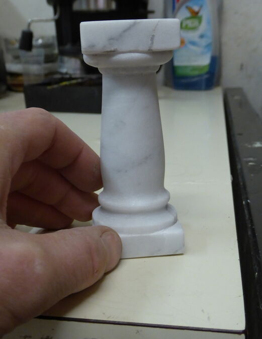 Die Miniatur einer Griechischen Säule wurde in Handarbeit und mit Hilfe eines Drehbanks aus Carrara Marmor gefertigt.