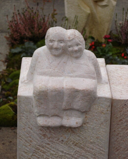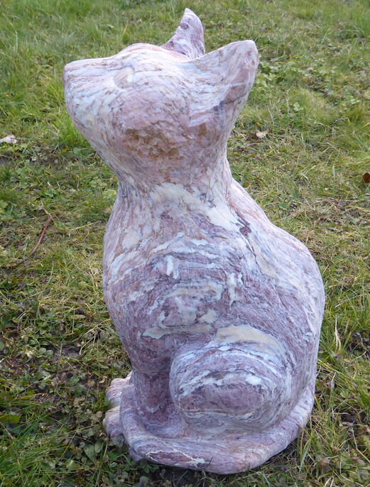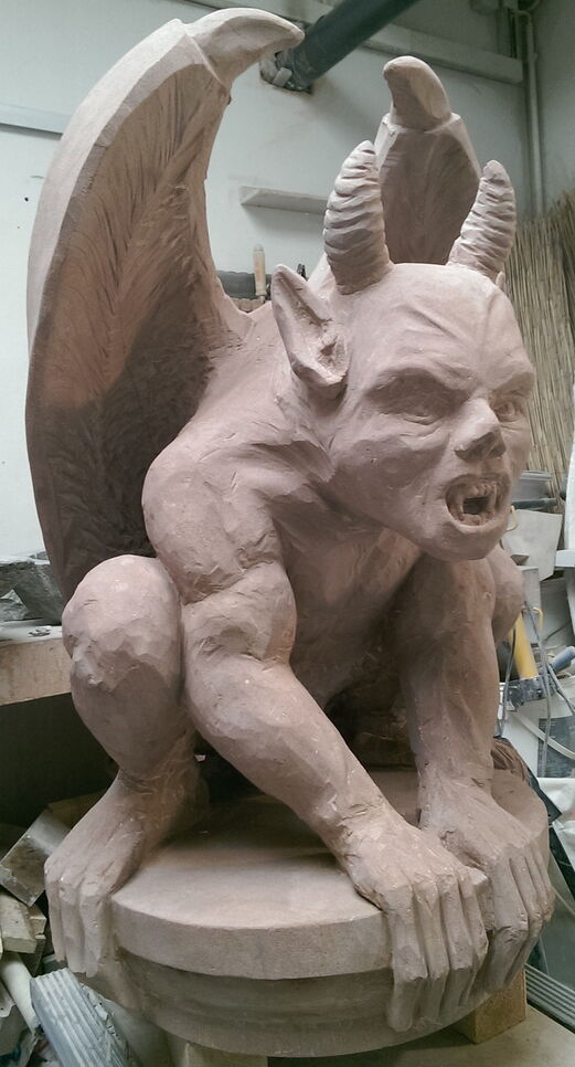 Zuerst wurde ein Modell im Masstab 3 zu 1 aus gefertigt und in Gips gegossen. Die Figur wurde dann in ein Sandsteinquader von 90x50x50cm gehauen.