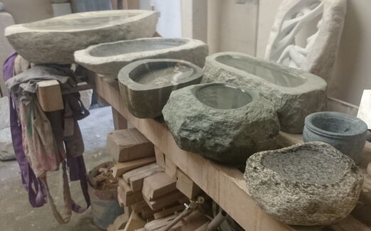 Wir haben diverse Schalen aus Naturstein in unserer Ausstellung. Sie können von uns aber auch eigene Kiesel oder Felsen zu einem Vogelbad oder dekorativen Gefäss weiterverarbeiten lassen.
